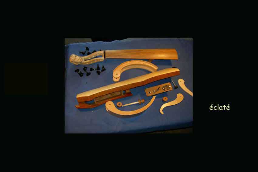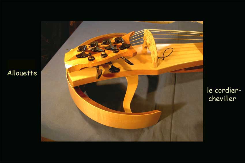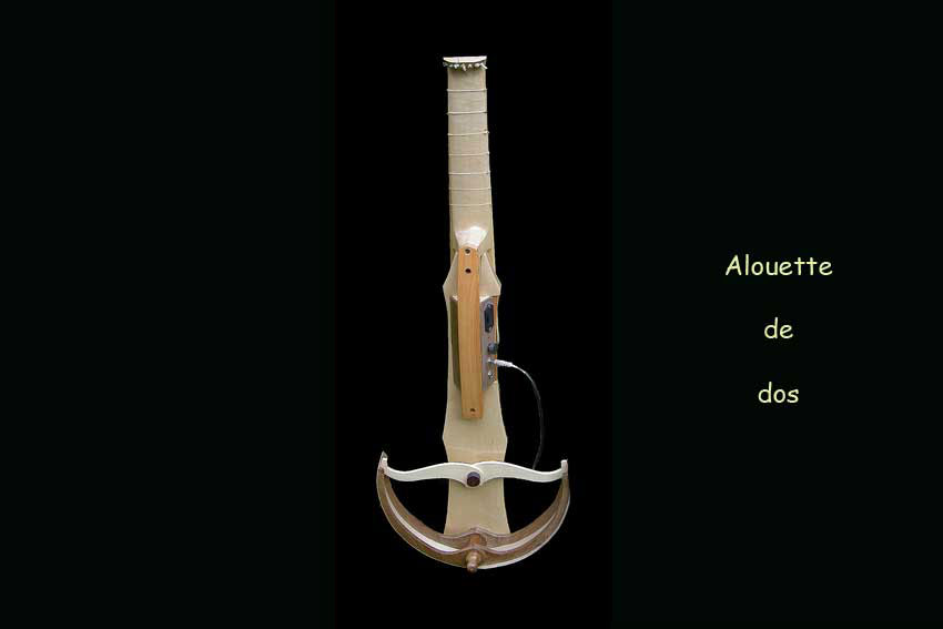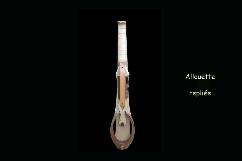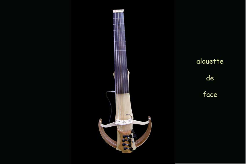 The Alouette model is designed to make its size as small as possible. The tailpiece and the pegbox are one piece. The placement of the tuners is perfectly ergonomic. thus the tuning is very easy. The instrument has no head. |