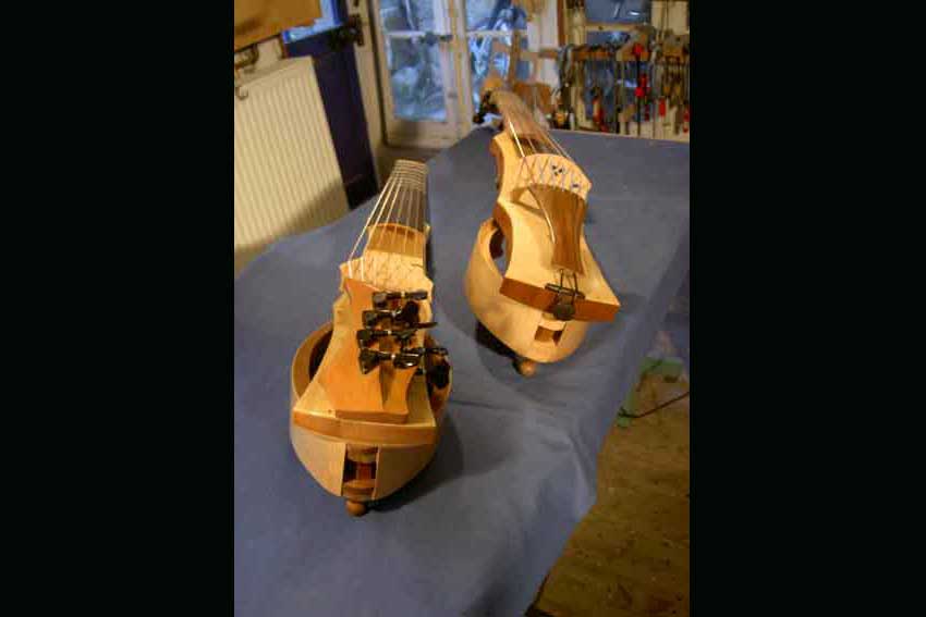 » like a baroque viol. The bridge, the angle of the neck, the tension of the strings are the same as those of an accoustic viol. So the sound is quite similar to it. |