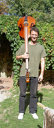 La caisse de ce prototype est sensiblement de la taille de celle d’une basse de viole.
